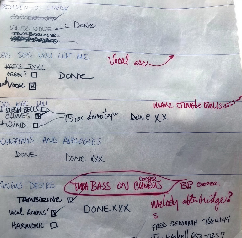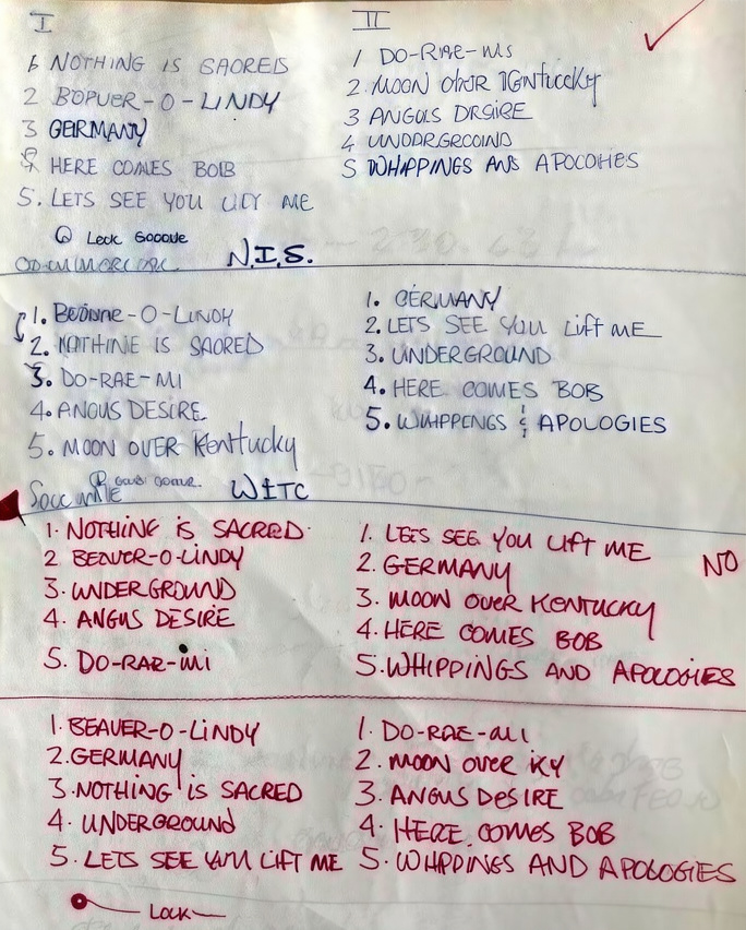 The album’s running order, oddly enough, was chosen by James Lowe: ‘That was the order I put everything in. I gave it to them and it came back the same. They were always respectful and would ask what do you think?’ Lowe played around with different sequences, as can be seen below.