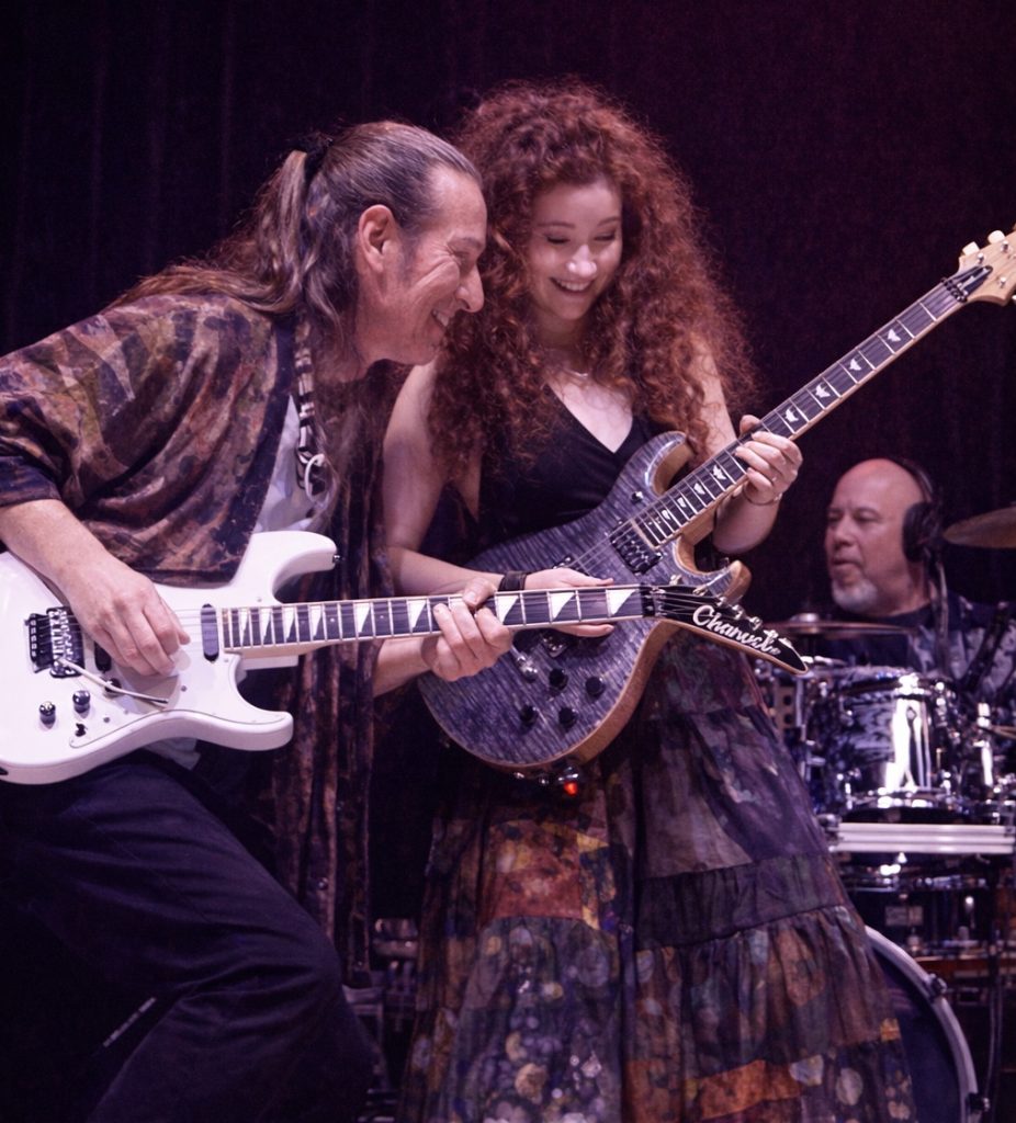 Ebony couldn’t do a tour last year because she was touring in the Netherlands and I said to her, ‘I’ve got to go find someone, any thoughts?’ She said, ‘well you could try Leoni’, who she’d met on a gig somewhere. And what a find Leoni was! She’s a brilliant guitar player, singer and great songwriter. So I thought, ‘oh, wow it would be great if we could do something together.’ What happened was she sent me a video of her jamming along to Wongle, because it’s her favourite thing as well. She was just jamming this great solo over the top, so when we got into rehearsals we had a go and it’s just brilliant fun. Leoni also plays all of the acoustic guitar parts in the set, which is really nice.