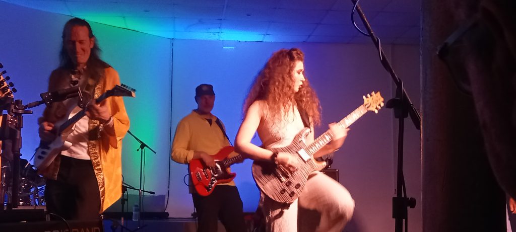 The setlist was a fine mix of old songs and new favourites and it’s always interesting from them because this is a band who don’t play the same set time after time. Firefly and Shout made for a brightly optimistic one/two opening salvo. Life followed and is a great song that shows off Jess’s vocals as well as Jenny’s violin. I love the cool-down section too. Plunk rides on a Hammond organ and nagging Reggae rhythm and definitely was a groove, with Andy tearing off a killer solo for good measure. Time for the twisting turning rhythms of Frippa with even a Ceilidh violin section courtesy of Jenny. Earthsong is as relaxing as a warm bath, very pleasant and very appealing. Wongle No, 9 and it’s time to funk things up and this is just terrific live taking on an extra vibe to the studio version. Having the violin and guitars soloing over the top makes it different too! Mount Ephraim is always a firm audience favourite and this was a fabulous version of it.