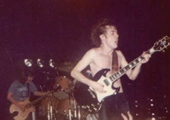 So when the lights went down for AC/DC the front was rammed. I was leaning on the stage with Angus Young mostly in front of me and Cliff Williams (bass) behind him. Angus of course moved around a lot, he hardly ever stopped, but that was his starting position. At the rear was Phil Rudd, AC/DC’s own ‘rudder’ on drums and to the left from my view was the main-man – the dynamo and engine of AC/DC that was Malcolm Young. Stage-front and centre was Bon Scott, clad in figure hugging jeans and a cut-off denim and the main focus of the band along with Angus.